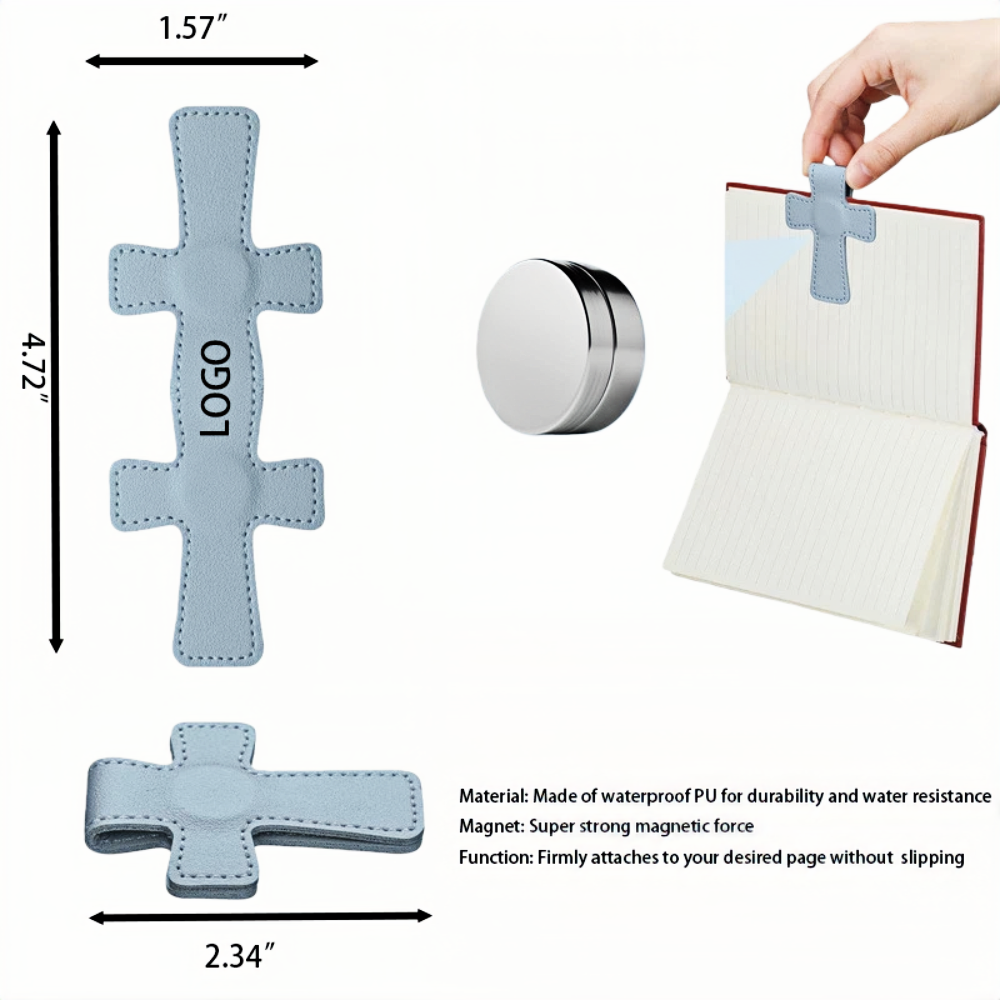 Make every page turn stylish and enjoyable with this cross shaped magnetic bookmark. Its unique and fashionable design stands out while rust resistant PU leather protects your books without scratching like metal bookmarks. The built in magnetic closure keeps pages secure, preventing slips and making reading hassle free. Perfect for marking books, notes, or documents, this practical bookmark is ideal for readers, teachers, or book lovers and makes a thoughtful gift for birthdays, Christmas, or other special occasions.