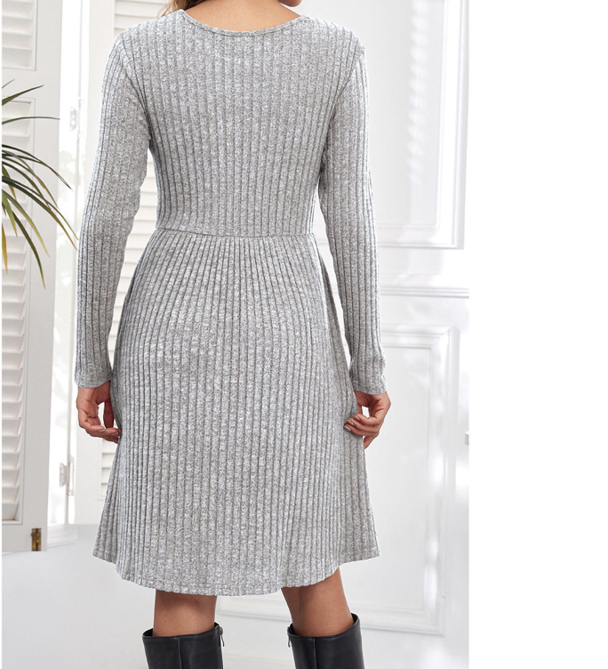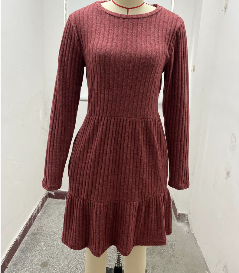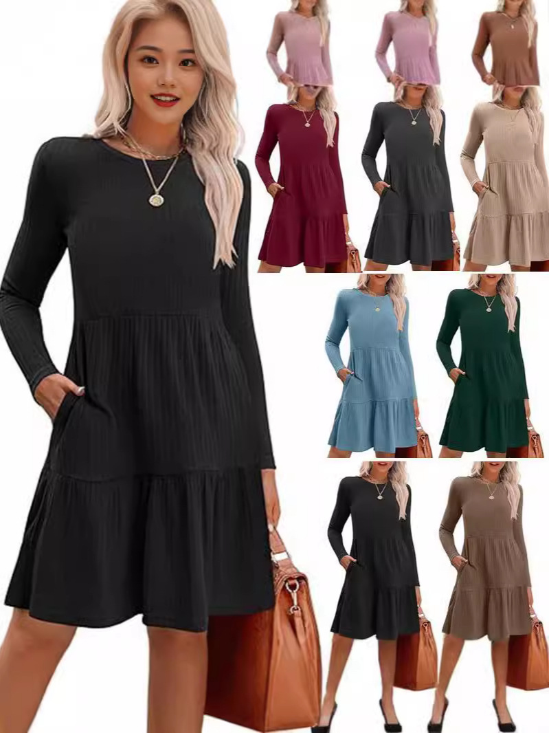 Women's knit dress is well made of soft, comfy and skin-friendly fabric, stretchy and not shrink. It features classic crew neck and high empire waist. Deep pockets on both sides can provide extra storage for carrying small items. Knee length dress is easy to style with leggings, boots or a scarf to achieve a classic look. Wearing a necklace, the crew neck will highlights the neckline and adds sparkle to your look.