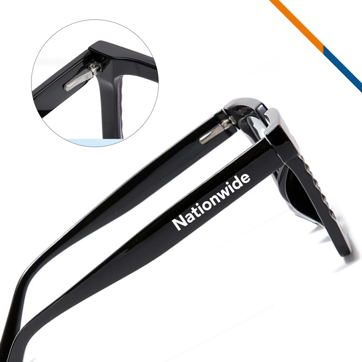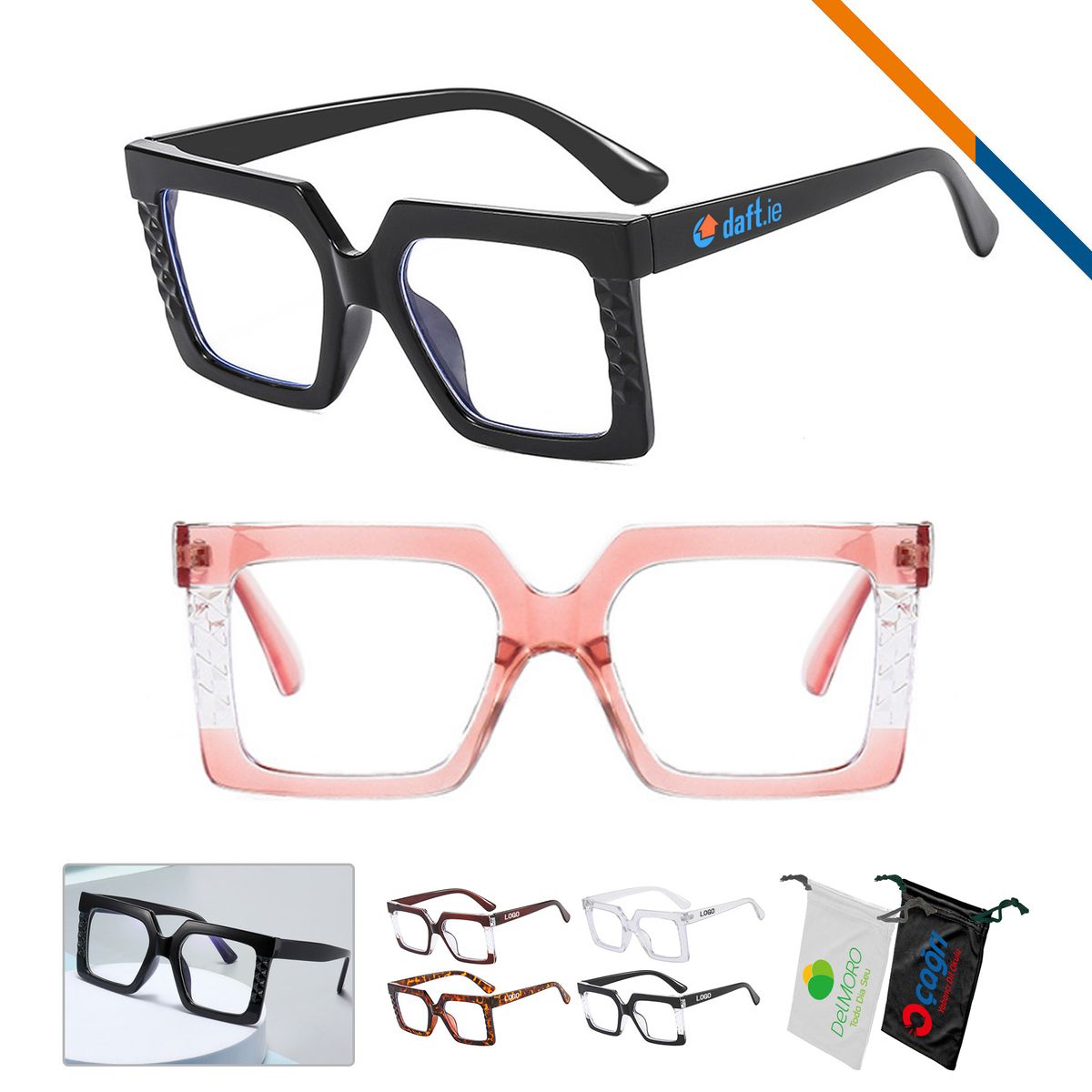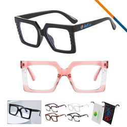 Shield your eyes while staying stylish with Tomlinson Square Blue Light Blocking Eyeglasses! Made of high-quality PC material, these non-prescription glasses have square frame design. The diamond-shaped embellishments adorning the sides of the frames makes the eyeglasses eye-catching. The lenses can filter out the blue light emitted by digital devices, such as computers, smartphones, or tablets, and offer UV385 protection from sun. Nose pads and sturdy hinges ensure durability and comfortable wearing experience. Perfect for office, school, and driving. Standard price includes blank microfiber pouch. Optional imprint on the microfiber pouch with full color logo available with charge, MOQ100.