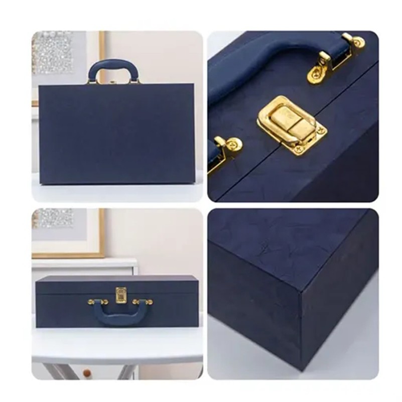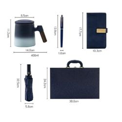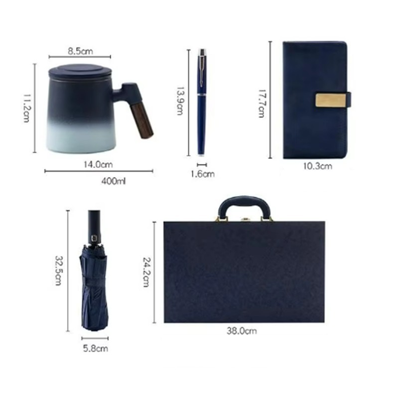 Elevate your gift-giving with our sophisticated professional gift set, elegantly packaged in a sleek presentation box with custom inserts. This luxurious set features an automatic umbrella, stylish coffee mug, premium notebook, and sleek metal ballpoint pen. Perfect for welcoming new employees, showing appreciation to clients, or impressing corporate partners. Make a lasting impression with this exquisite gift set that exudes class and sophistication.